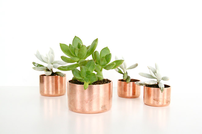 This might only work if you keep your succulents inside. Copper heats up greatly when placed in the sun and can burn the roots of your plants in no time. I made this mistake last summer and lost a few beautiful succs. Not to be a Debbie Downer, just keep these babies inside and away from heat.