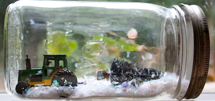 The tractor is my favourite one of all. This one is for me! I will be keeping my eyes open all year long for knick knacks to put in winter scenes for next year. I will be keeping my eyes open for little gnomes, foxes, wolves, and tractors! I will also be looking for Mason type jars through the year too, I much prefer them to up-cycled jam and pickle jars.