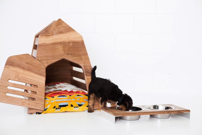 How adorable are these dog and puppy dens "For Gimli Dog Den" from Vancouver-based Gamla? Each Den features a locking door, making it perfect for puppy training, and is made of solid walnut and brass with a bright colour panel option. There's also a matching Feeder which features solid metal legs, and wood options of maple or walnut with an accent strip down the middle. These products were made with their new dog, Gimli in mind, meaning that (as with all of their products) they only uses non-toxic finishes and products so that your pup will not only be stylish, but safe too. There's also an optional dog bed, handmade at Gamla HQ using organic cotton (with a protective lining) along with a pre-washed and shrunk removable Pendleton Mills cover.