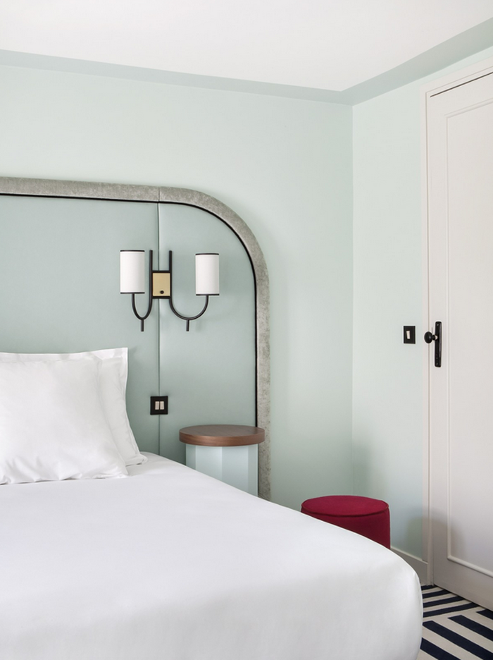 We're kicking off this week with a recently launched hotel (again, in Paris), called, Hotel Bienvenue. We just can't seem to get enough of the art deco-style these days, and this one doesn't disappoint. Designed by Studio Chloé Negr, the Hotel Bienvenue boasts pastel themed rooms in monochromatic style with pops of colours added in for surprise. Which coloured room would you stay in? Let's take a look.