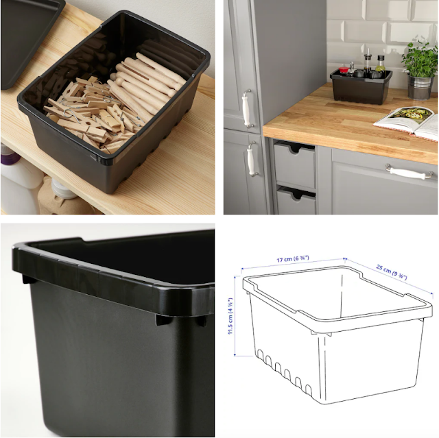 A durable, sturdy and slightly smaller plastic box that you can have in all kinds of spaces and use for many different things. And you can easily see what's inside – even when stacking several vertically. More info here. $2.99
